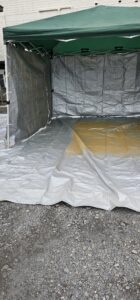 小型のタイヤショベルや除雪機などの重機の部分塗装でしたらこのようにタープを使用して塗装する事ができます。青森県内の津軽地域中心に出張塗装可能です‼お気軽にお問い合わせください。