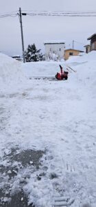 あけましておめでとうございます。本年もよろしくお願いいたします。今年の雪は今まで体験したことがない大雪です。除雪しても次の日には元通りの積雪です、除雪機で頑張ってますがタイヤショベル等の重機があればも
